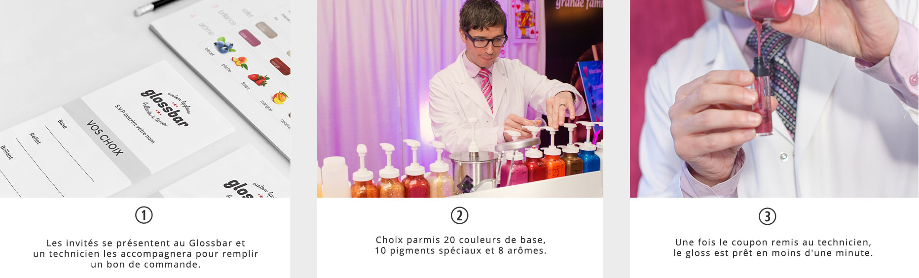 Le nombre de gloss commandés détermine le nombre de techniciens sur place (1 à 6 personnes).