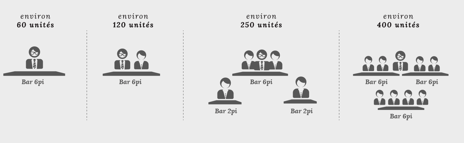 L'organisateur effectue la location d'un ou plusieurs bar en plexi blanc chez un fournisseur spécialisé.